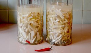 На кожен літр самогону беруть 0,3 кг тертого хрону. Для настоювання знадобиться не менше сімдесяти днів, після чого ви отримаєте не тільки різкий і оригінальний напій, але і непогане антивірусне і антибактеріальний засіб. Хріновуху п’ють по двадцять грамів в день для профілактики простудних захворювань.