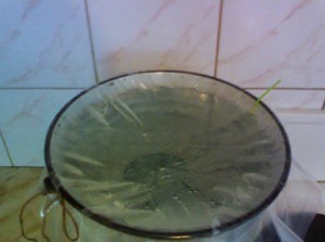 Інструменти: 10-15 л відро, глибока миска, підставка, щільна прозора плівка, широка гумка, кип’ятильник, холодна вода, натхнення.