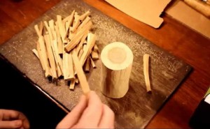 Заготовлені дубові полешки, очищені від кори, колють за розміром 15х3х0,5 см, вимочують у воді і сушать при підвищених температурах. Вимочування проводиться протягом доби, при цьому вода повинна змінюватися за цей час не менше 3-4 разів. Це дозволить позбутися від надлишку дубильних речовин. Вимочену тріску заливають на 6 годин содовим розчином з розрахунку 1 ч. на 5л води. Після содової ванни промиті кілочки кип’ятять протягом однієї години, для підтримки температури використовують максимально слабкий вогонь. Після кип’ятіння дубову тріску сушать протягом однієї доби у підвішеному стані в провітрюваному приміщенні.