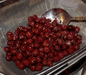 Журавлину промити, розчавити дерев’яною товкачкою, з’єднати з іншими компонентами. Замість роздавлювання плоди можна попередньо помістити в морозильну камеру, а потім розморозити. Це процедура зруйнує клітинну структуру і прискорить екстрагування.