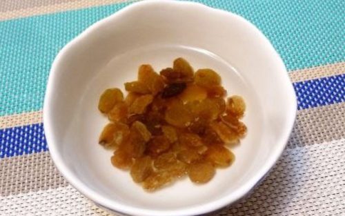 - Сушений родзинки промиваємо, просушуємо, якщо на дотик занадто жорсткий, то на 20 хвилин замочуємо його в теплій воді, якщо м’який, то просто висипаємо в окрему мисочку.