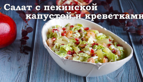 Прості і смачні салати з пекінської капусти можна зробити з додаванням морепродуктів. Так для урочистого застілля можна взяти рецепт з фото з креветками і ананасами. Закуска виходить красивою і оригінальною на смак.