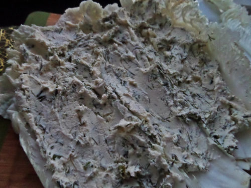 - Листя пекінкі обполіскуємо водою, просушуємо і розкладаємо внапуск.