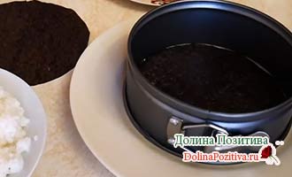 Починаємо формувати салат у формі тортика. На велике блюдо встановлюємо форму.