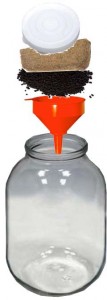 Що стосується питання, як зробити і використовувати вугільний фільтр для очищення самогону, то абсолютно нічого складного в цьому немає. Беруть звичайну пластикову пляшку, відрізають дно, отримуючи таким чином імпровізовану лійку. В кришці (гирло лійки) проробляють кілька невеликих дірочок.