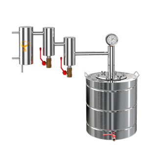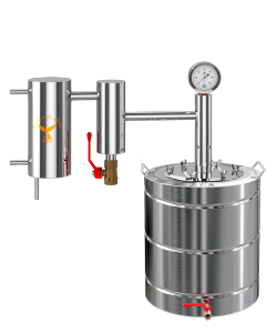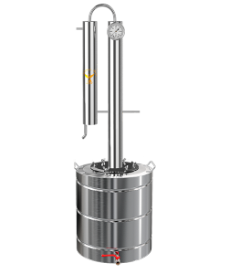 Міні-завод для отримання в домашніх умовах дистилятів високої міри очищення з більшою швидкістю. Апарат оснащений зміцнює колоною з насадкою Панченкова, яка ефективно затримує домішки, не допускаючи попадання в кінцевий продукт сивушних масел і інших небезпечних компонентів. Бак з феромагнітним покриттям днища підходить для експлуатації на всіх видах плит.