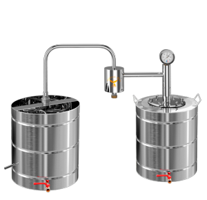 Апарат, оснащений перегінним кубом 12-27 літрів, користується незмінною популярністю серед власників домашніх міні-винокурень. Конструкція включає бак з харчової нержавійки, сухопарник і проточний холодильник. Металевий термометр у верхній частині патрубка дозволяє простежувати зміна температури пари і контролювати процес перегонки.