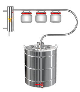Вдале рішення для отримання спиртовмісної сировини при відсутності джерела проточної води. У цій моделі передбачено додатковий резервуар, призначений для охолодження змійовика. Агрегат випускається в декількох модифікаціях, які відрізняються між собою обсягом бака. Ємність холодильника залишається незмінною ? 20 літрів. Щоб отримати якісний продукт, важливо стежити за температурою рідини в резервуарі охолодження.