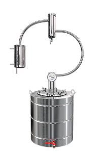 Це перехідна модель від класичних апаратів ?сухопарник+змійовик? до апаратів колонного типу. Поєднує в собі властивості і тих і інших. Сухопарник не розбірний, але з краником для зливу.