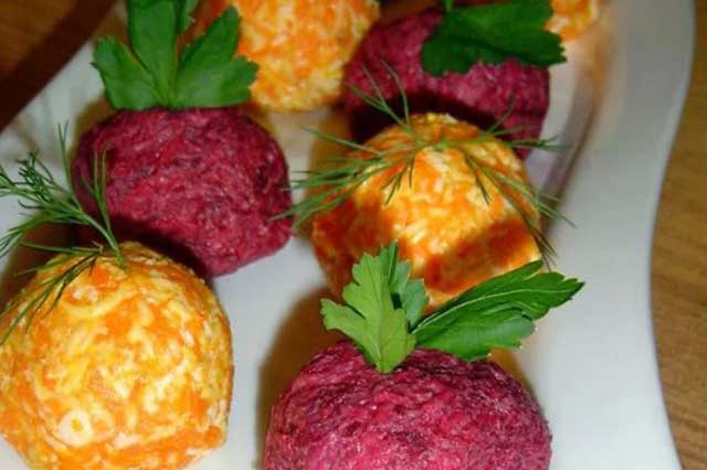 Ще одна проста у виконанні і зручна у використанні варіація улюбленого страви – рулетики в лаваші. Це один з варіантів порціонної подачі. Видів персональної сервірування безліч: тарталетки, закусочні кульки в кропі, варіант формування салату ягідкою. Вони мають ошатний, святковий вигляд і як не можна краще підходять для новорічного столу.