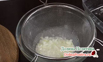 Подрібнену цибулю, потім відкиньте на сито. Маринад стек? Видавіть залишки рідини ложкою.