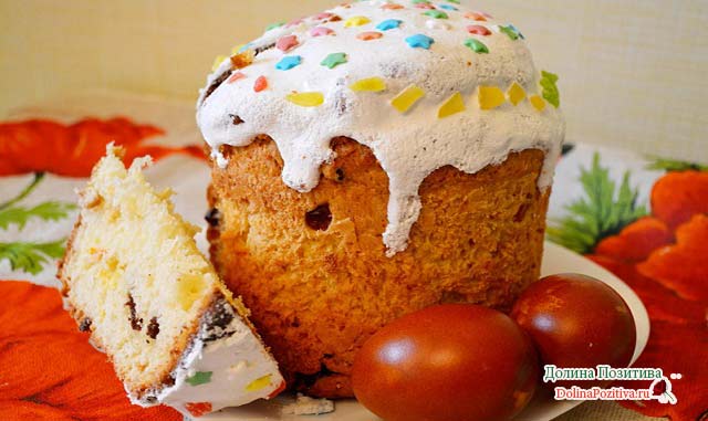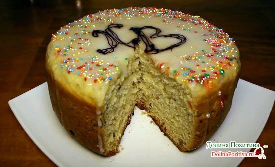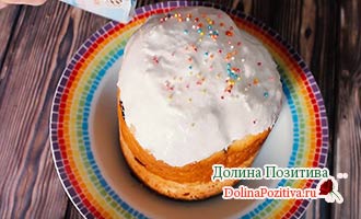 Завдяки грамотно підібраному складу в даному рецепті, великодній хліб виходить ніжним, пишним і не сухим. А глазурі, зроблена на желатині, не тріскається, не осипається і не кришиться.