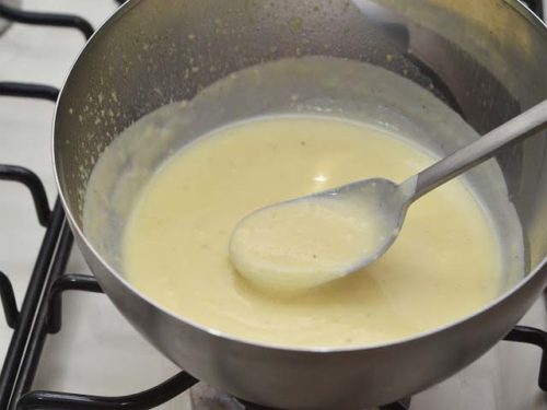 - Додаємо в соус киплячий бульйон або окріп, ще раз ретельно розмішуємо.