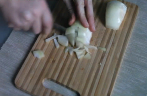 - Лук очищаємо і нарізаємо, як зазвичай для обсмажування.