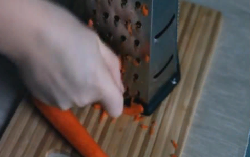 - Тепер викладаємо шар цибулі, нарізаного попередньо і моркву, також підготовлену заздалегідь.