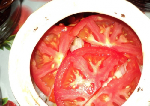 - Розливаємо соус по горщикам з м’ясом, картоплею та цибулею, закриваємо кришками. Ставимо горщики в духовку, розігріту до максимуму, запікаємо 25-30 хвилин.
