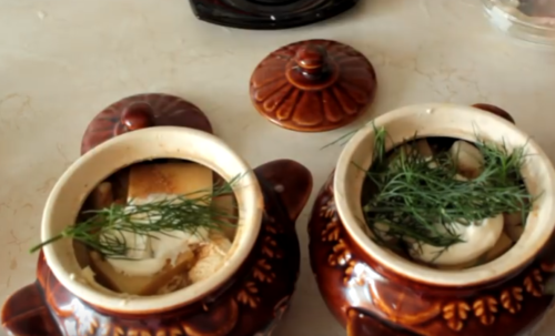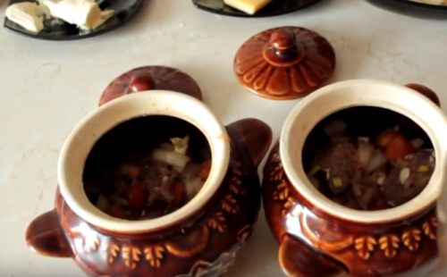 - Закрити горщики кришками і ставимо в духовку, при 220°С, на годину.