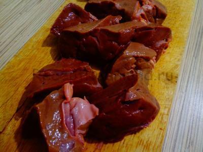 Печінку помити, нарізати на кілька шматків, пропустити через м’ясорубку.