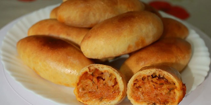 Зроблені по цьому рецепту пиріжки ідеально підходять для тих, хто постить, але не може відмовити собі в задоволенні поласувати домашньою випічкою. Рекомендується використовувати як свіжу, так і квашену капусту, додаючи моркву. Робити такий здобний варіант дуже просто, адже не потрібно займатися опарою, а за смаком пиріжки будуть нічим не гірше, ніж смажені на олії.