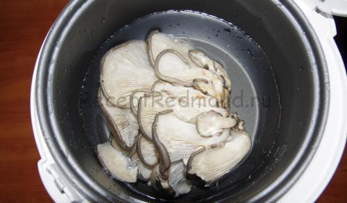 Посоліть і варіть сирі гливи в режимі «випічка» 20 хвилин.