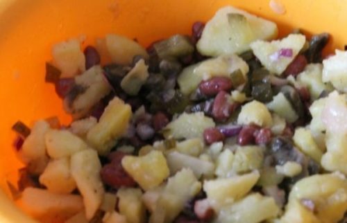 Такий салатик можна готувати і зі свіжою квасолею, для цього її потрібно на ніч замочити в холодній воді, а потім відварити.