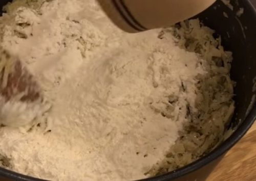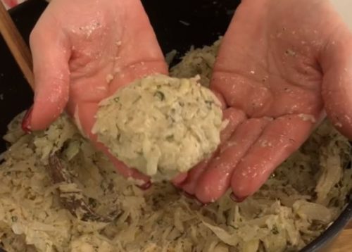 - Капусту віджимаємо, щоб видалити зайвий сік.