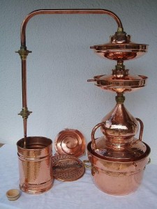 Для перегонки використовують апарати різноманітних конструкцій. Принцип їх пристрою однаковий. В герметичну ємність заливається брага, яка при кипінні випаровується і по змійовику надходить в охолоджувач. Пари спирту конденсуються в змійовику, охолоджуючись, перетворюються в рідину і надходять в окрему тару. Оптимальна температура кипіння браги 78-83 °С. Щоб кипляча рідка брага не викидалася у змійовик, апарат заповнюється брагою не повністю.