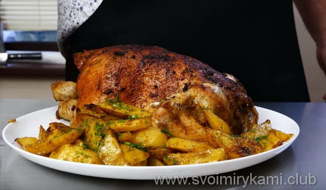 - Рецепт картоплі з куркою в духовці на деку