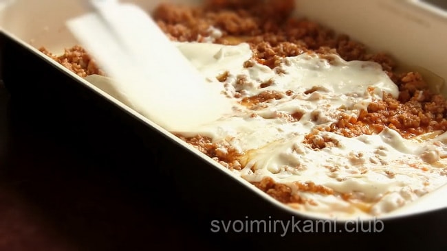 Подивіться це відео. У ньому показаний відмінний рецепт приготування лазаньї з м’ясом.