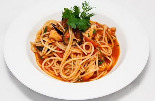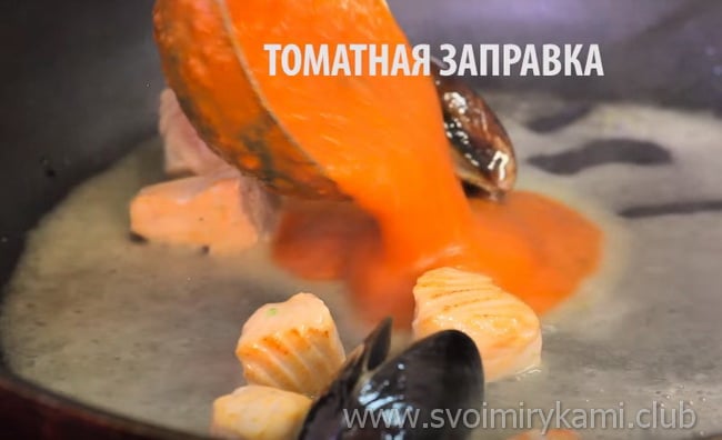 • Паста в томатному соусі з морепродуктами