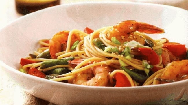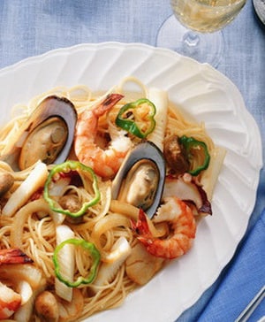 • Спагетті з морепродуктами і соєвим соусом
