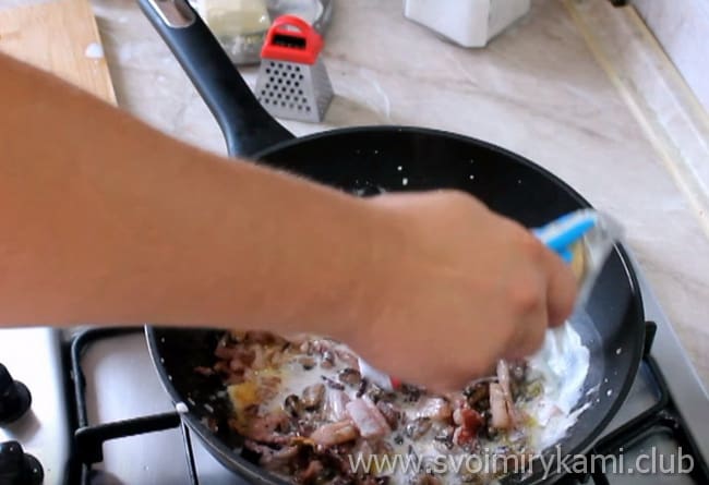 • Доливаємо вершки. Перемішуємо і готуємо 2 хвилини.