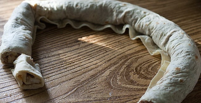 - Лаваш можна запекти в духовці з будь-якою начинкою. Таку начинку, як м’ясо, бажано відразу обсмажити або відварити. Інакше воно може не пропектися під час приготування. Це правило відноситься до будь начинці, яка довго готується. Наприклад до картоплі.