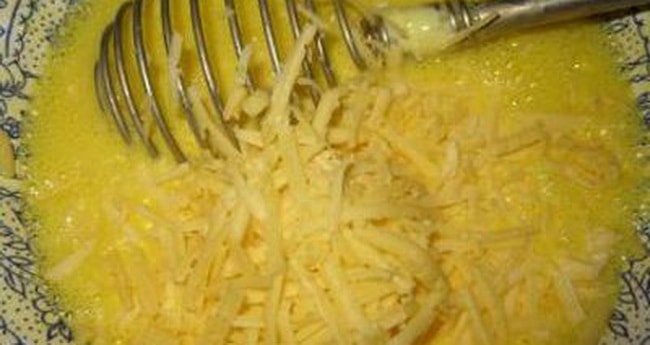 Збийте яйце з молоком і сіллю. Потім натріть 50 г твердого сиру і додайте в заливку, перемішайте. Можна за бажанням додати чорний перець. Залийте цією сумішшю рулет і поставте запікатися.