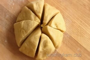 Розділити тісто для лазаньї ножем на 8 рівних частин, потім розкачати кожну частину на тонкі пластини (до 1,5 мм завтовшки).