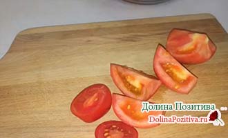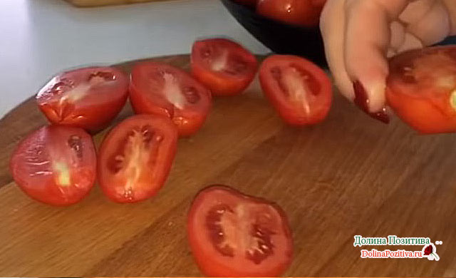 4. Нарізаємо чисті сухі помідори половинками або четвертинками (в залежності від розміру томатів).