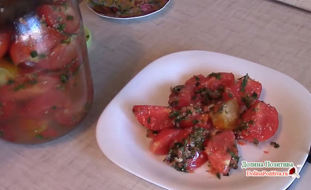 Пікантні помідори, які порадують в будь-який час року, готуються дуже швидко з мінімальним набором продуктів.