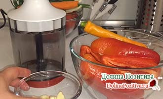 1. Пропускаємо через блендер перці і зубчики часнику. Перекладаємо заправку в окрему тару.