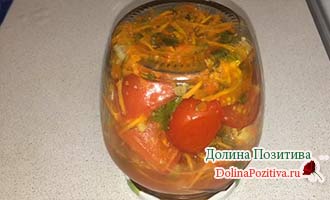 Консервація корейських помідорів з морквою і цибулею на зиму