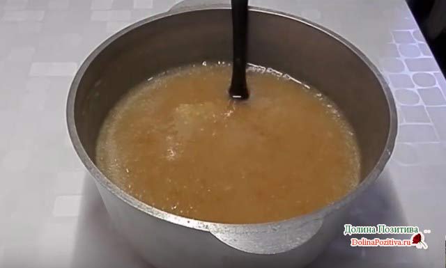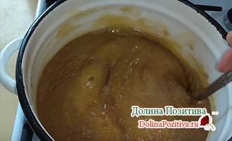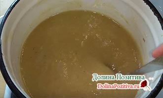 Після закипання проварюємо масу ще хвилин 25. Стежимо за готовністю і не забуваємо помішувати.