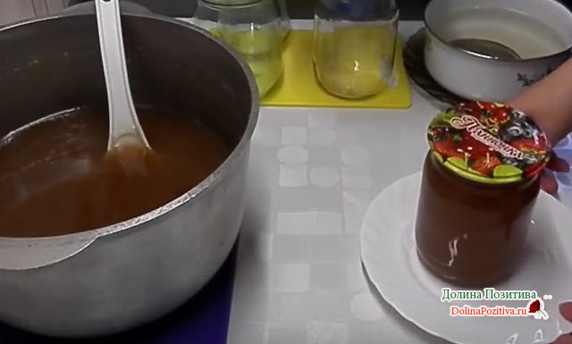 Розливаємо ласощі по заздалегідь оброблених ємкостей. Із зазначеної кількості продуктів виходить 4 півлітрові банки і піала на пробу.