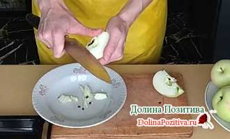 Яблука звільняємо від серцевини і нарізаємо довільним способом. Маса з шматочками яблук легше піддається варінні.