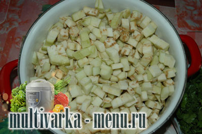 Трохи солі і улюблених приправ, а решту можна довірити розумною каструльці. Хвилин за п’ять до закінчення роботи програми в рагу з баклажанів додається зелень і перемішується з іншими складовими страви.