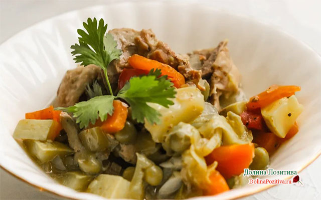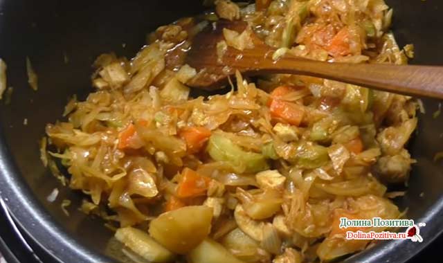 Овочеве рагу з куркою, кабачками, капустою і картоплею в мультиварці