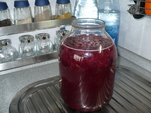 Плоди потрібно підготувати і всипати в банку, після чого розім’яти їх і засипати цукром. Прикрийте марлею і залиште на добу в теплому і темному місці. Після цього вилийте в каструлю суміш і залийте водою. Отриману консистенцію потрібно підігрівати на плиті і не дати їй закипіти. Отриману суміш потрібно настояти протягом чотирьох діб. Настоянку, після проціджують і настоюють протягом чотирьох діб.