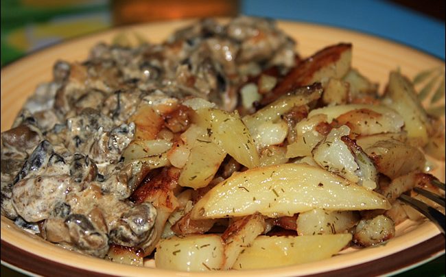 Рецепт приготування опеньків, смажених із картоплею та сметаною