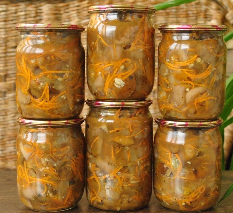 • Змішати варені гриби з іншими компонентами рецепту і розкласти по стерилізованим банкам. Накрити тару кришками.