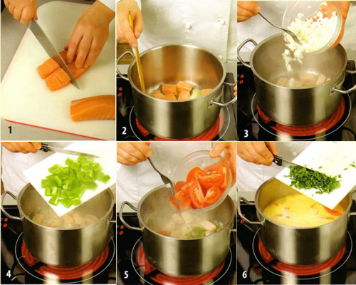 Пропонуємо вам приготувати вершковий суп з червоної риби рецепт якого дуже простий.