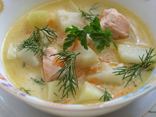 Гості не тільки високо оцінять ваш рибний суп з червоної риби рецепт вони будуть просити з такою ж наполегливістю, як і добавки, а його ніжний молочний смак будуть пам’ятати ще дуже довго, тому, що Омега-3, що міститься в червоній рибі, стимулює клітини мозку і покращує пам’ять.