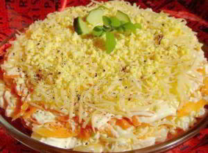І все ж ми почнемо з раритетного салату, для тих, хто не страждає упередженнями щодо своєї фігури.